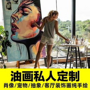 純手繪油畫(huà)定制照片人物人像訂制抽象客廳背景墻歐式玄關(guān)裝飾掛畫(huà)